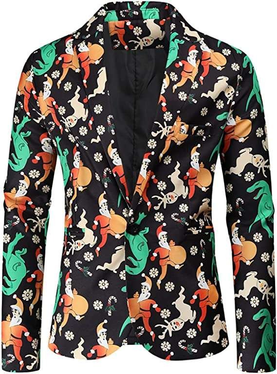 Funny Xmas Santa Snowman Print Blazer Suit Jacket for Wedding Party Prom Ugly Xmas Snowflake Print Tuxedo Suit Men’s