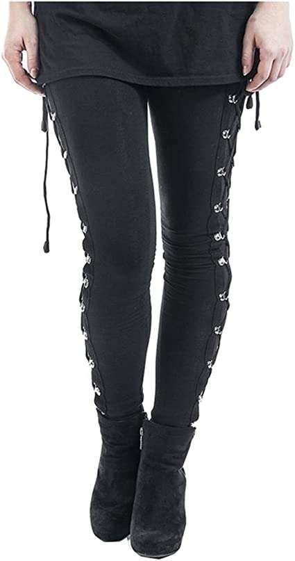 Janly Clearance Sale Women’s Pants, Women Gothic Lady Side Lace Up Leggings Black Skinny Pans Trousers, for Winter & Christmas