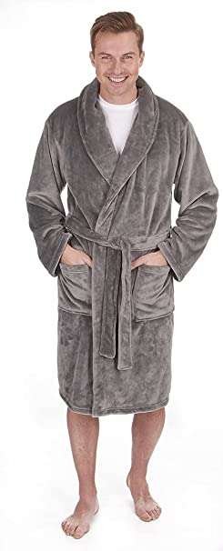 Pierre Roche Mens Dressing Gown Robe Flannel Shawl Collar Nightwear Soft Fleece