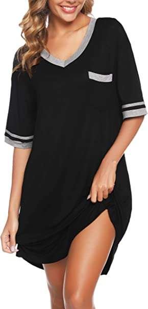 【SOFT FABRIC FOR SLEEPING SHIRT】Boyfriend style nightgown is made from 95% Rayon and 5% Spandex,which is soft, comfortable and elegant looking for sleep wear/lounge wear.