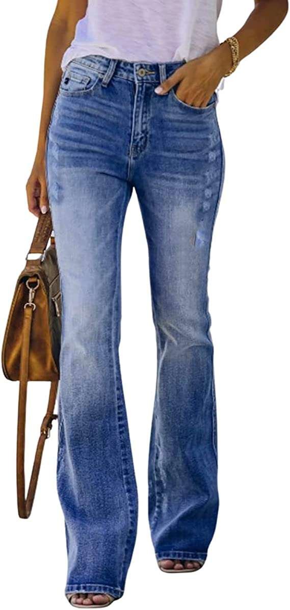 Women’s Retro Style Bell Bottom Jeans High Waisted Slim Fit Long Bootcut Flare Denim Pants